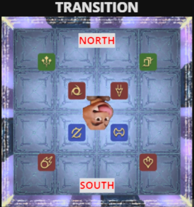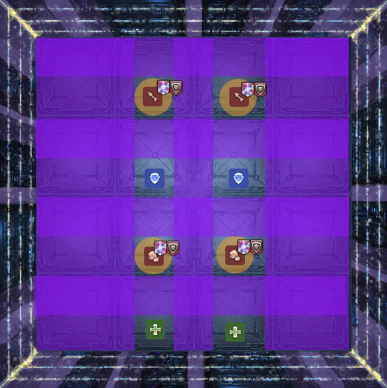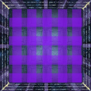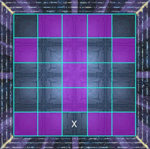 The boss will now cast Lightning Cage spawning the following grid pattern on the floor. This pattern is always the same but can spawn in any orientation. Here, we will take the square at the base of the ‘T’ as the new relative south for this mechanic.