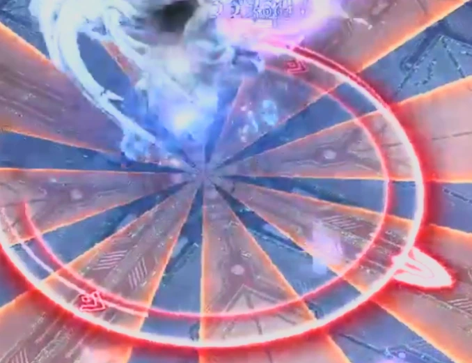 Once the cannon is fully formed, she will turn to one side and begin cleaving four columns five times eventually breaking the platform, leaving only one safe column of tiles.