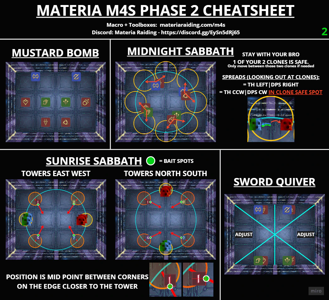 To resolve this mechanic, we have the party stand in their clock spots and dodge the in/out. At the same time, we have supports bait the first two sets of double dives followed by DPS.
