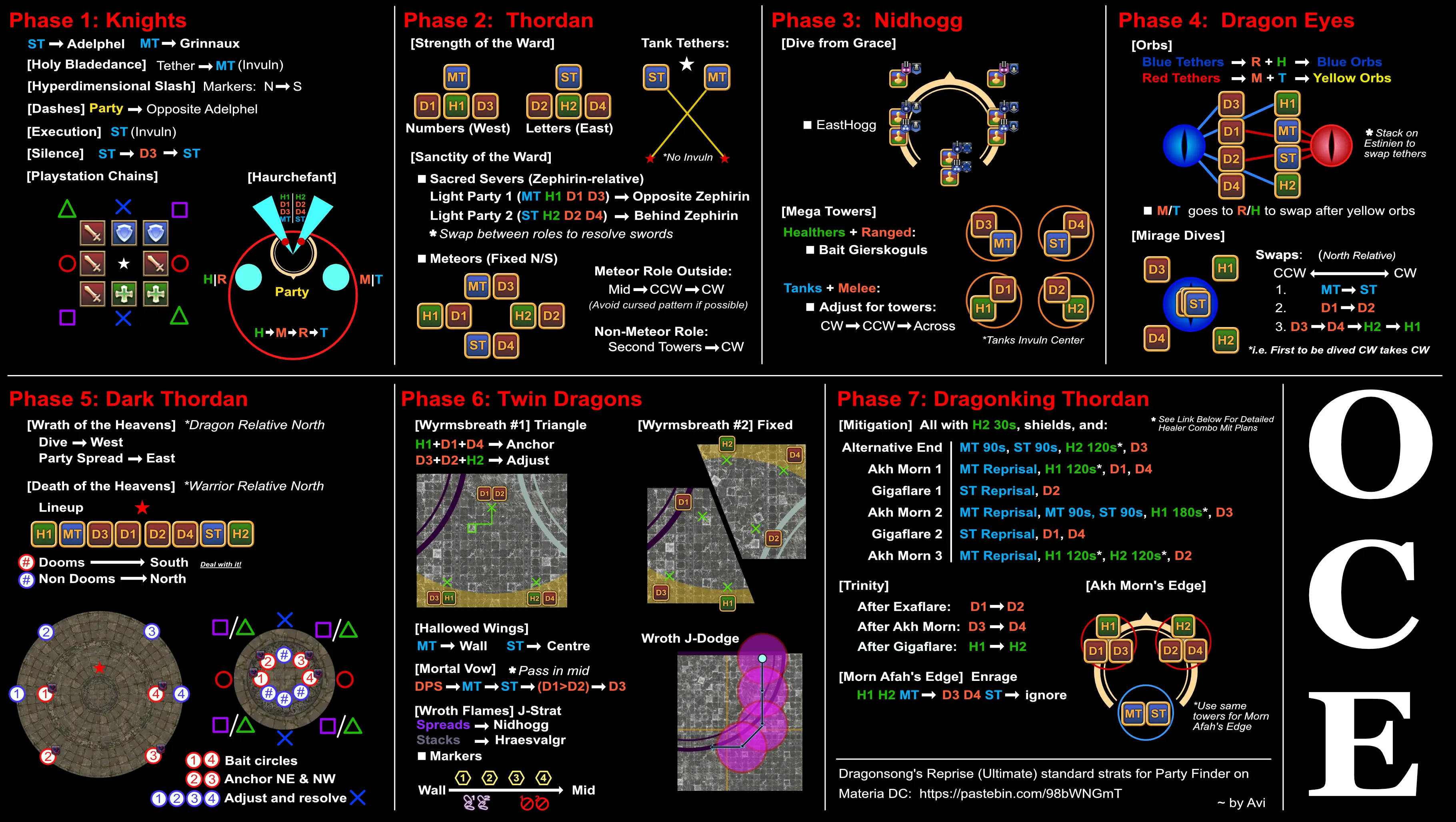 As Twisting Dive is going off, two more knights and thordan will drop into the center of the arena. After avoiding the twisters, players should spread on their side of the arena for an upcoming protean. A non-tether/defamation player will then be marked with dive bomb and should run to the wall behind the knight with a staff to bait it.
