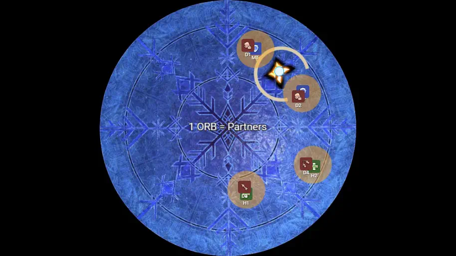 After arriving at the safespot, the party will either stack or spread. The spread can be seen in the image below. The DPS can move 3.5 notches from the star on the arena edge to determine a safe distance from the healer.