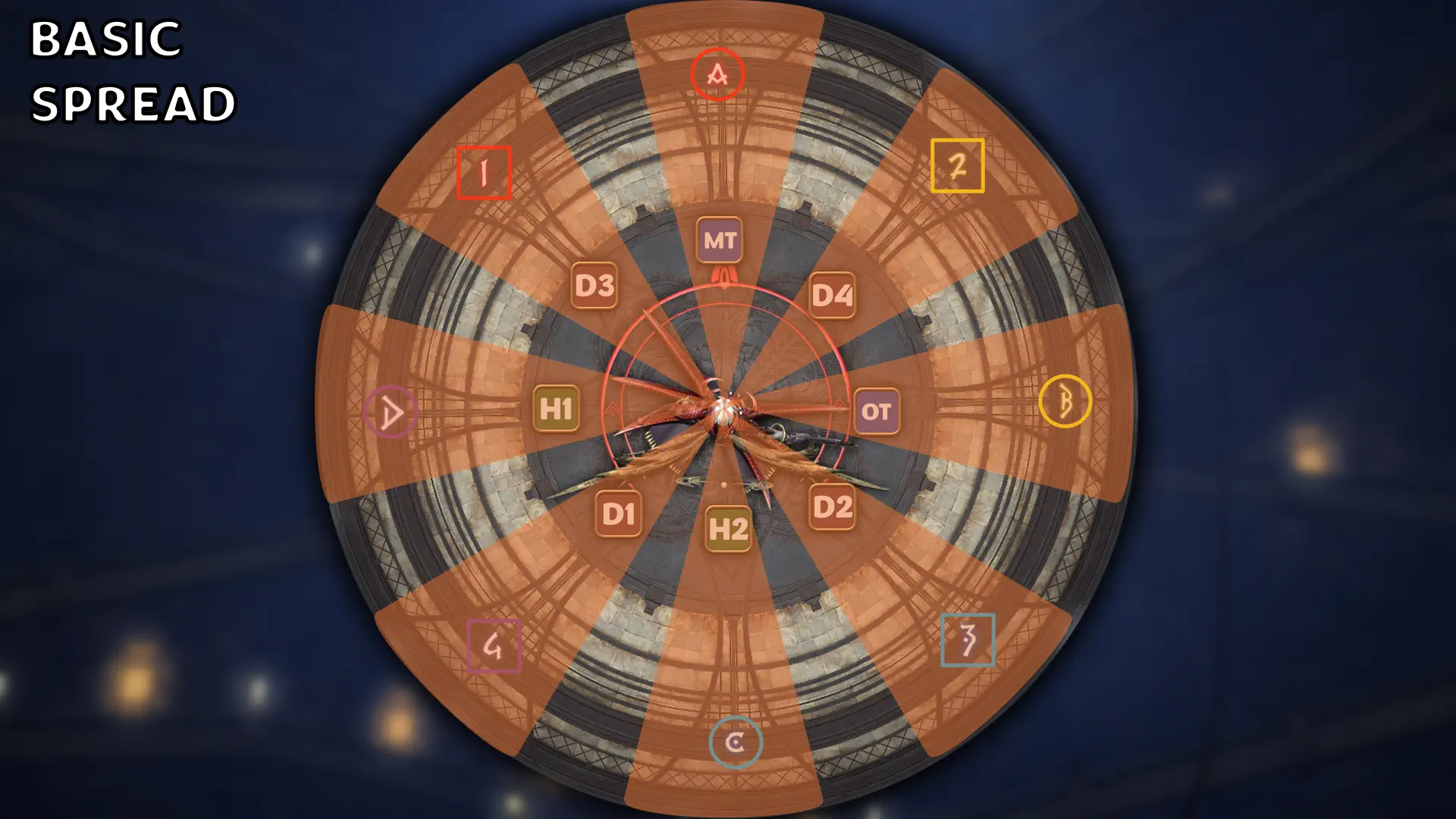 The Red Dark Aero and Dark Eruption player will stand 2 pips down from the star on the arena's edge so that they are leaning South/North respectively.