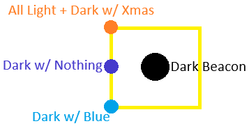 - Dark Beacon: you have a dark symbol above your head, your character stands near the wall and DOES NOT MOVE.
