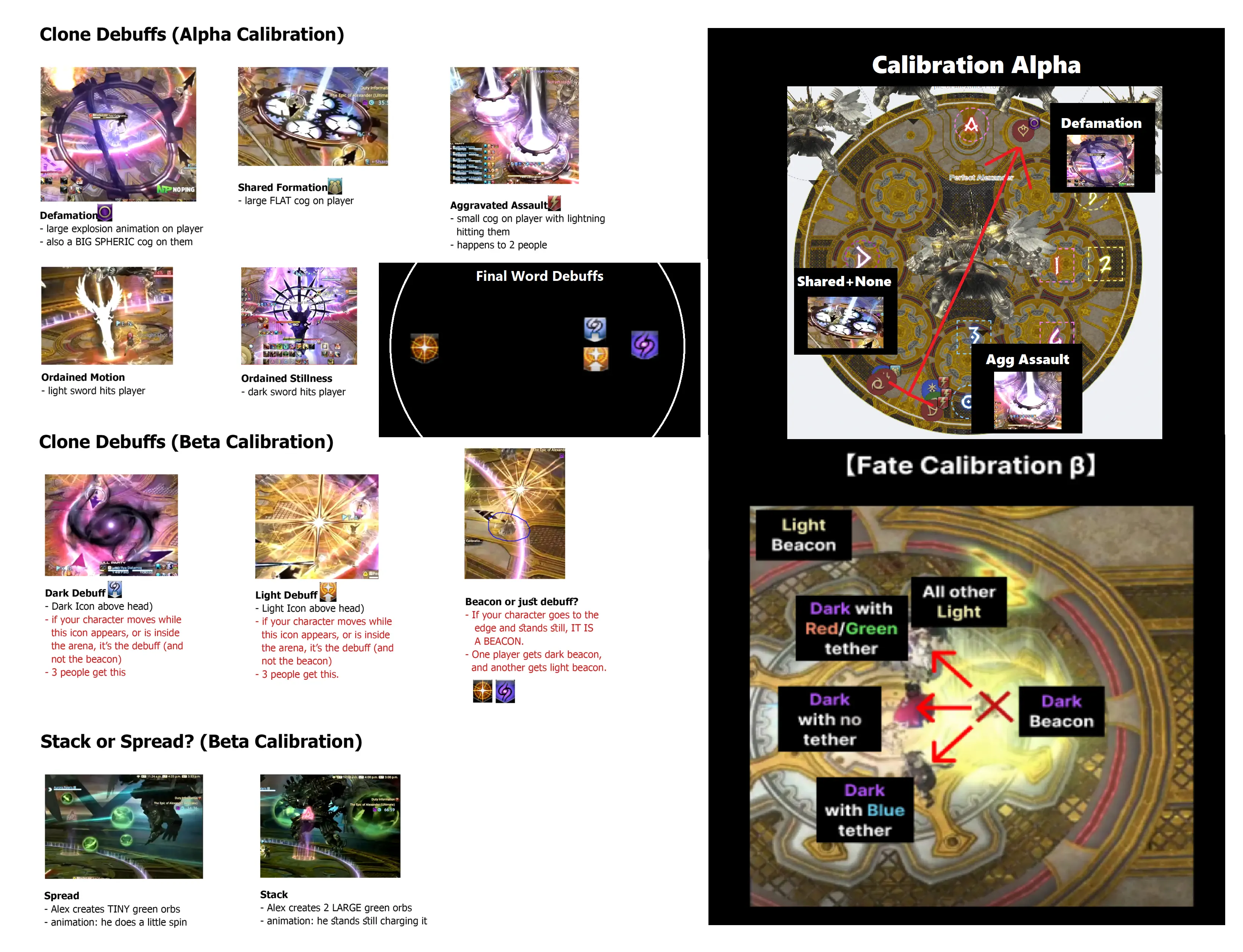 He will then do another long Fate Calibration Alpha cast. During his long cast, you see the entire mechanic play out then once the cast is finished, he becomes untargetable and you do the mechanic for real. In this mechanic, instead of getting debuffs on your buff bar, you watch the debuff happen on your clone. With no Enigma Codex and therefore no clones, you will have no idea who has what debuff or what the Perfect Alexander clones will do.