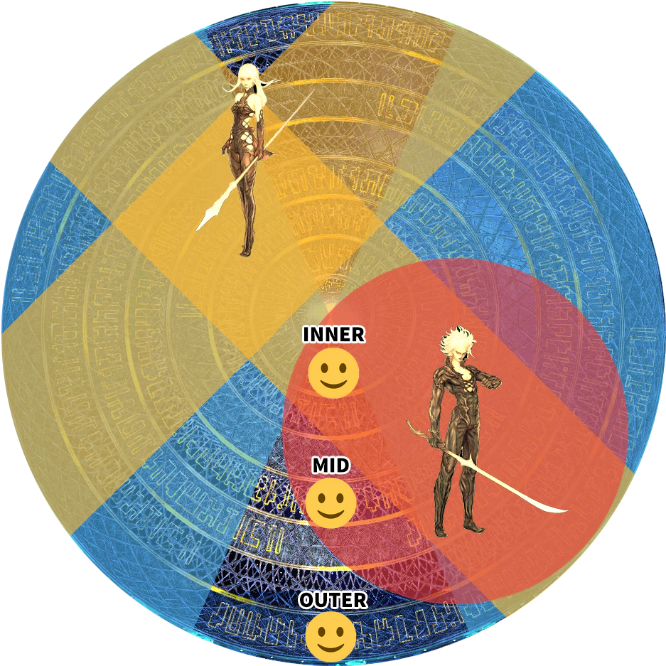 After each player takes an AOE, two stacks will then appear on two random players. Multiple clones will spawn around the arena, including a line of 3 Males, and 1 Female in the center. Using the middle of the 3 males as relative north, the party must form two stacks in their designated light parties around the female to get pushed back to 1 of 3 safe spots.