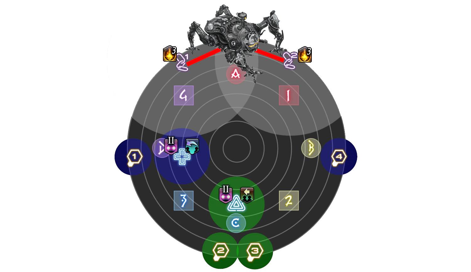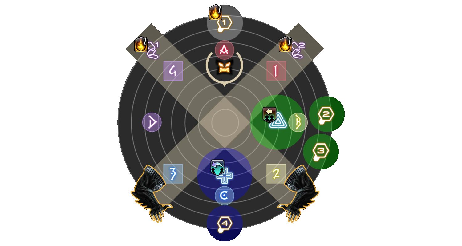 Program loop begins with each player being assigned a number from 1 to 4, with two of each across the party. This mechanic requires 4 sets of 2 towers to be soaked in a sequential order → → → that will deal significant damage to the player inside.