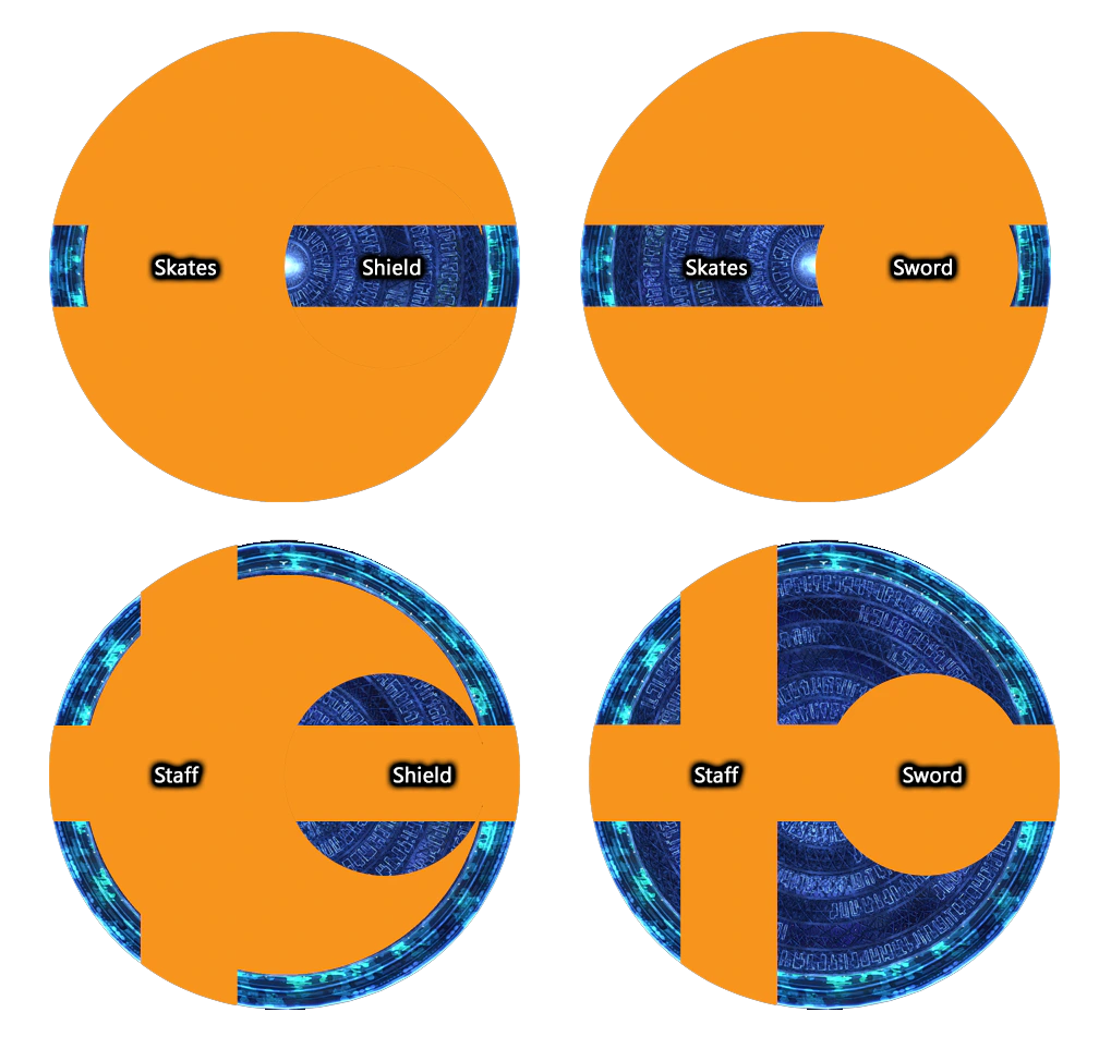 After the towers are soaked, Final Omega's Blades will spawn in the center with spinning arrows, and Omega-F will appear on a cardinal with either a staff or skates. Three players with 1 Spark of Hope stack are sent to the female's side of the arena, and the rest stack on the opposite side of the arena. If Omega-F has a staff, the players must wait against the edge of the AOE once it starts moving to avoid her cleave. If Omega-F has skates, simply chase the AOE after it begins moving.